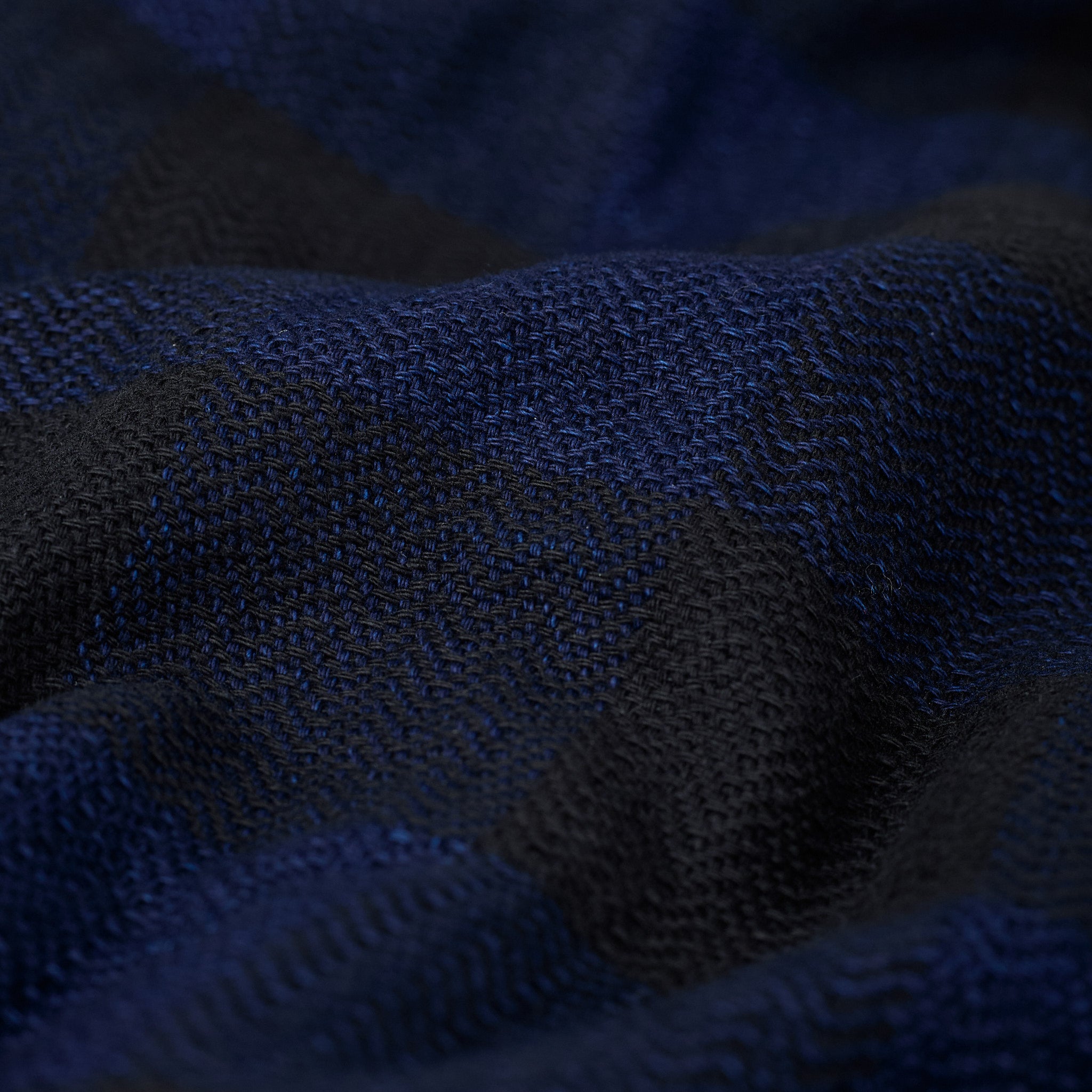 the block check flannel work shirt is a coveted classic from the japanese label the flat head. it is made in japan from the brand’s signature heavyweight herringbone flannel woven on vintage shuttle looms. a great shirt that keeps its shape even after years and only gets better and better. this indigo-dyed version is especially unique in its ability to fade with wear.