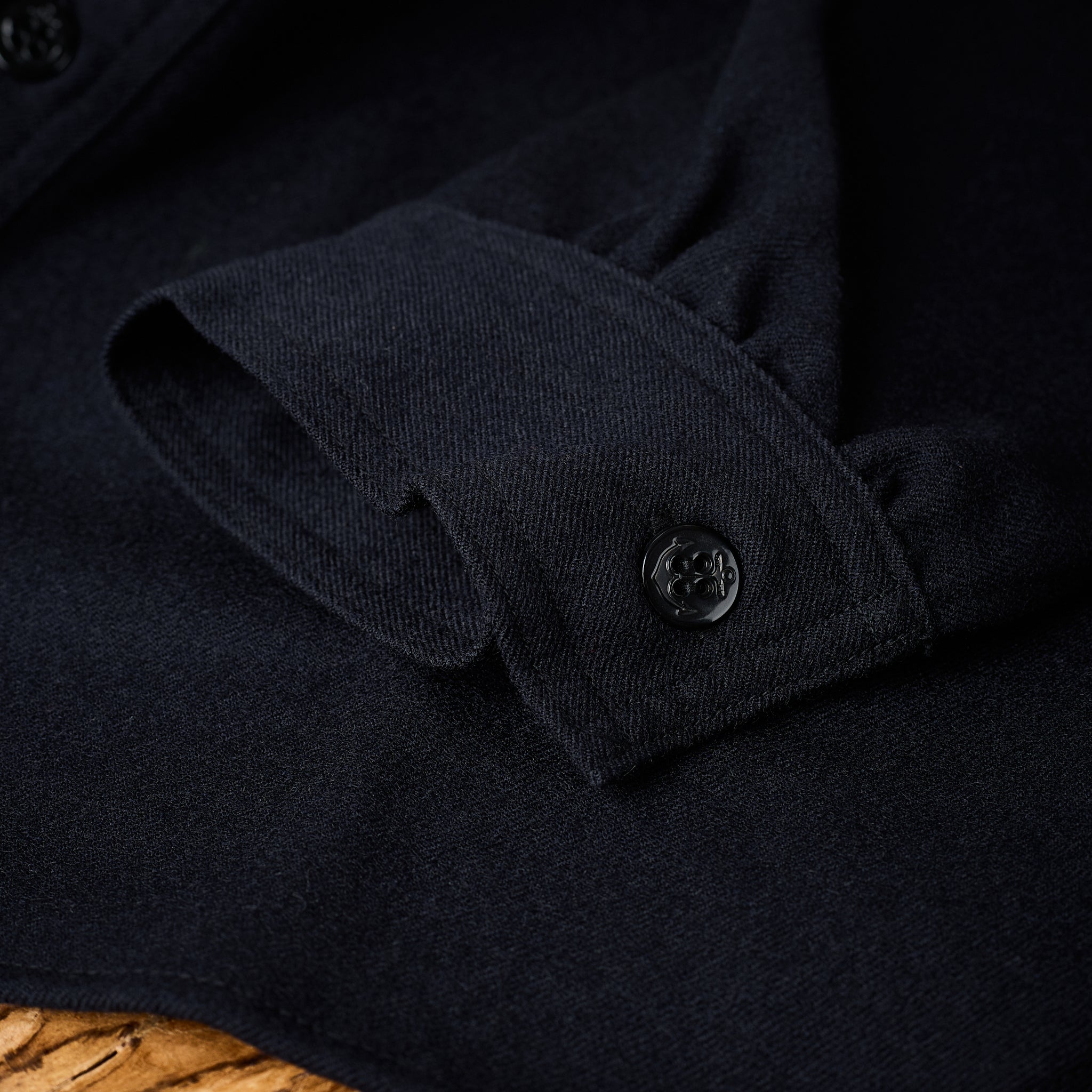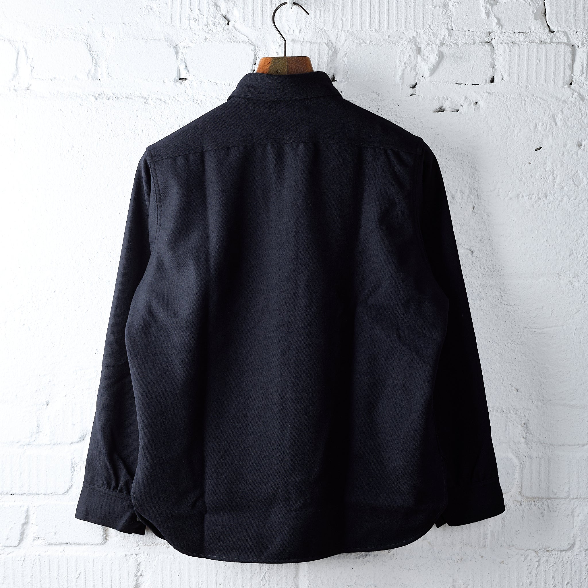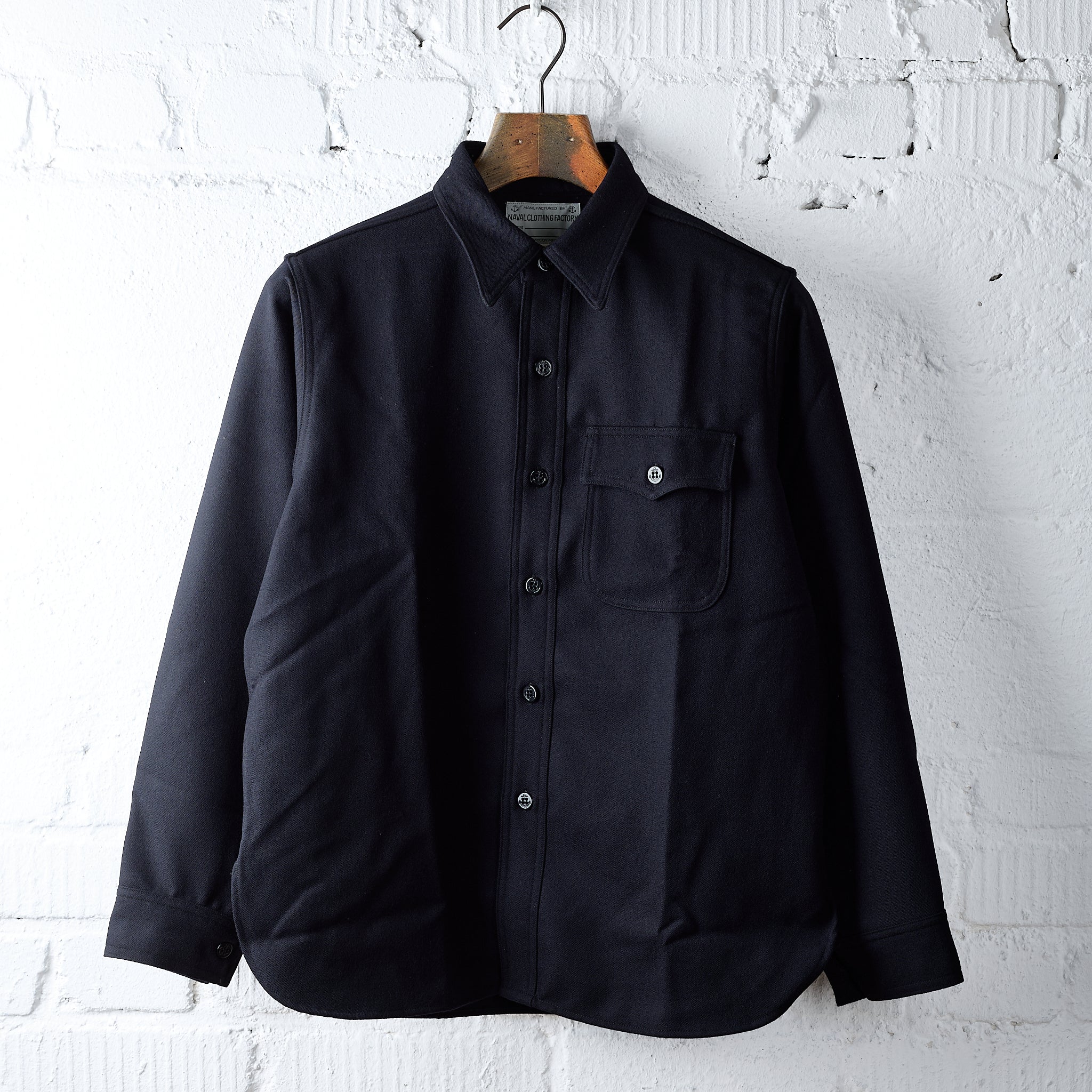 the beautiful dark blue c.p.o. shirt by the real mccoy's is made in japan from soft wool flannel. c.p.o. stands for ‘chief petty officer’, which is equivalent to sergeant major in the us navy. the c.p.o. shirt was part of the standard uniform of chief petty officers and was worn in public with a black tie and navy blue trousers, tucked into the shirt. over the years, there have been various versions of this now classic shirt. the real mccoy's has opted for a clean, elegant version with just one chest pocket.