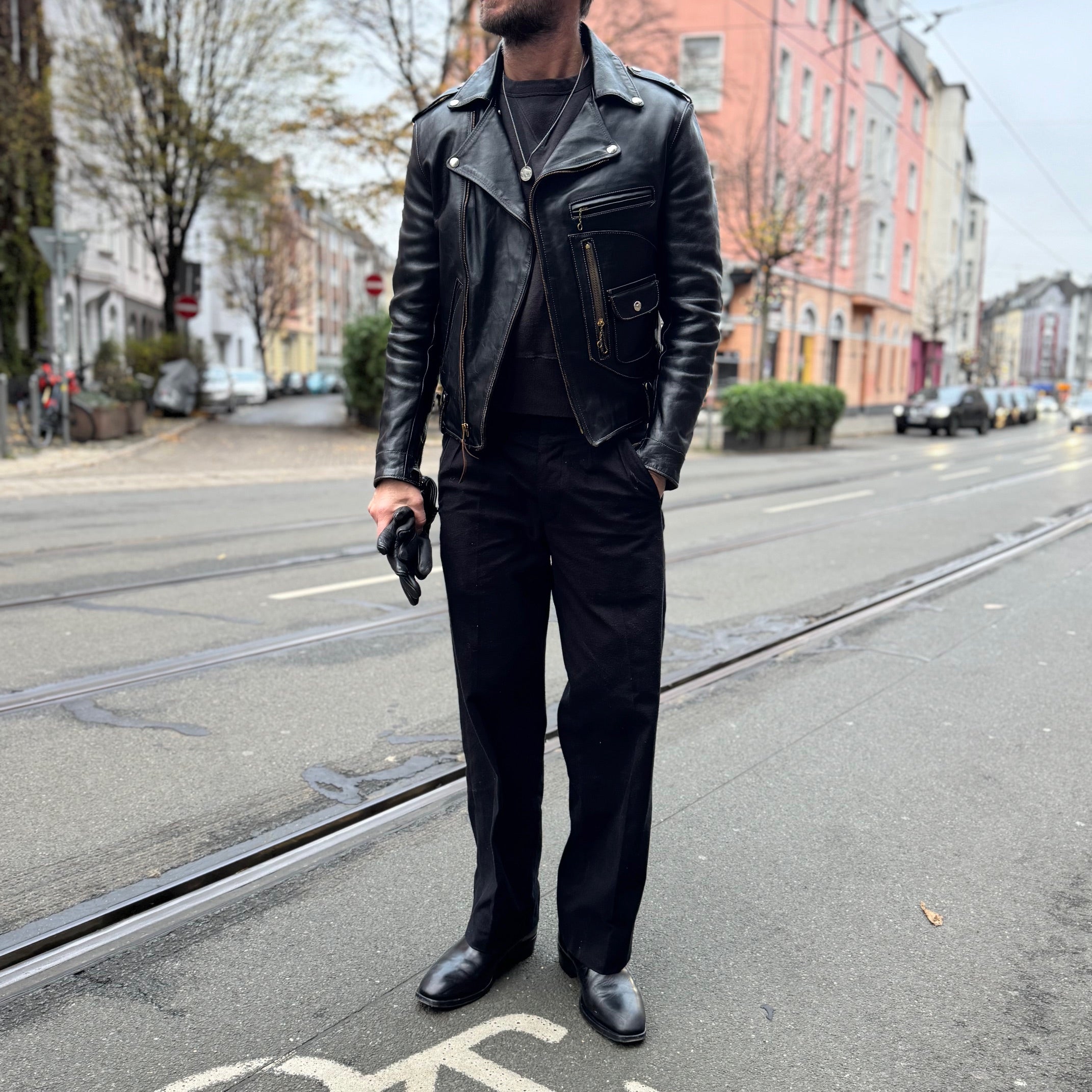a prime example of japanese tailoring craftsmanship: old joe's elegant pleated trousers are based on old tailor-made suit trousers from the 1930s and are made in japan from wonderfully soft cotton flannel. they feature a relaxed, straight silhouette without being too wide and look equally elegant with a shirt and boots or sporty with a sweatshirt and sneakers.