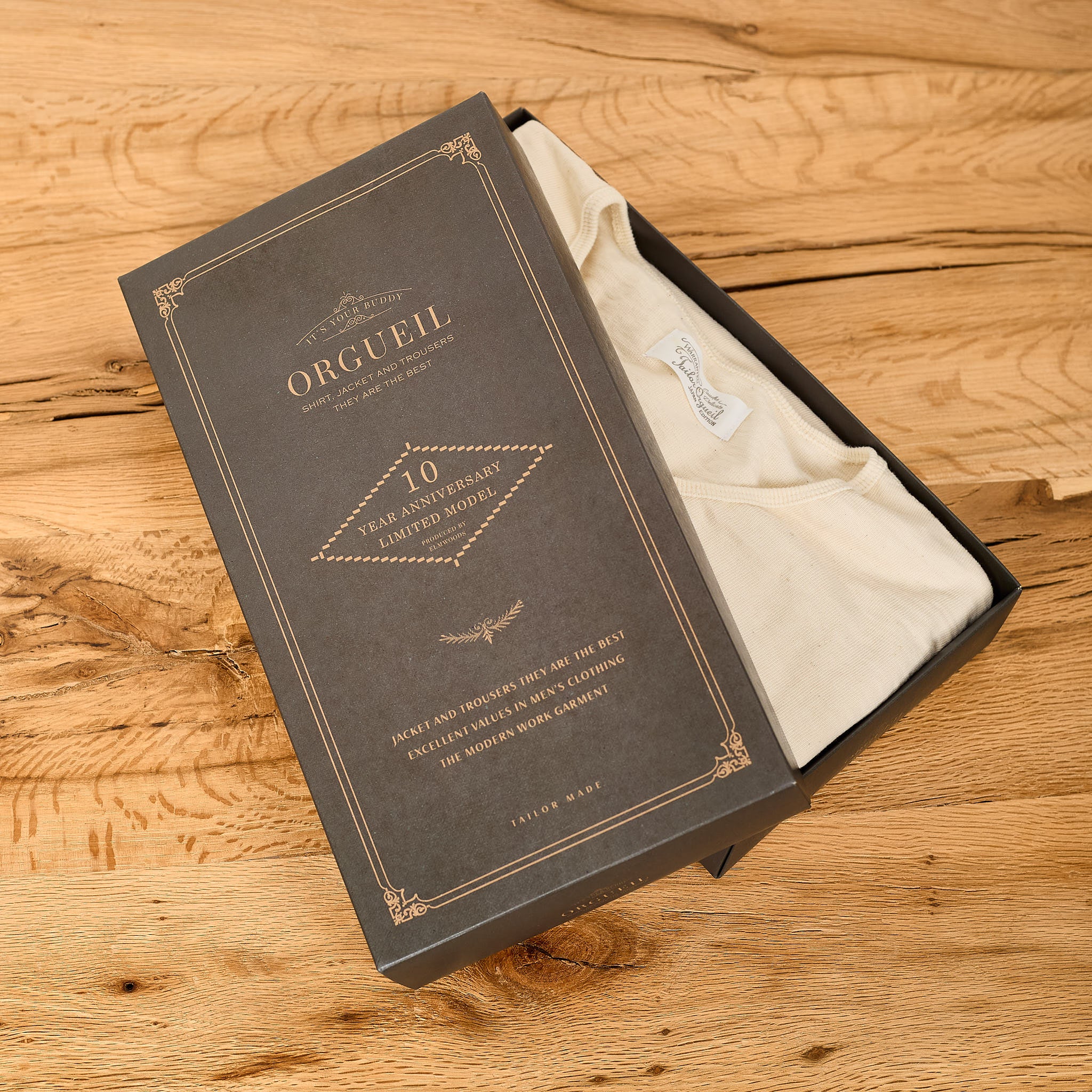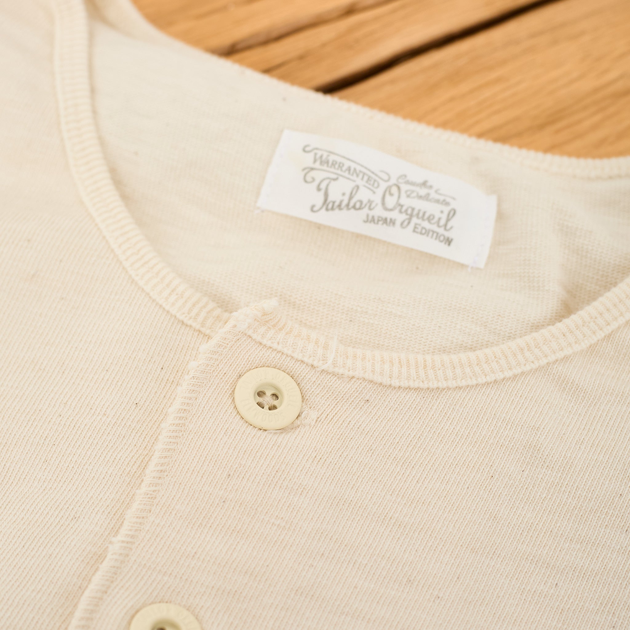 great henley by orgueil for the brand's 10th anniversary. the henley was knitted in wakayama on old hanging knitting machines, resulting in a fabric that is characterized by its irregular texture.