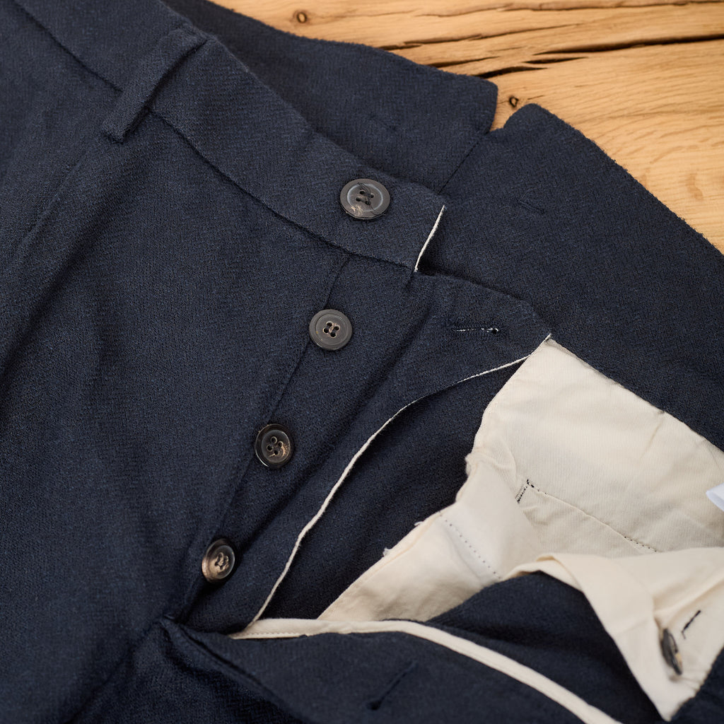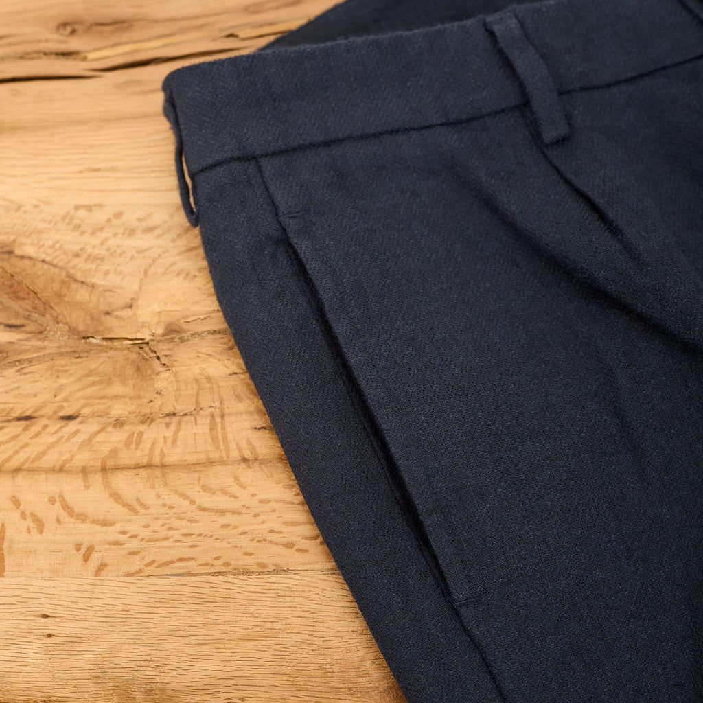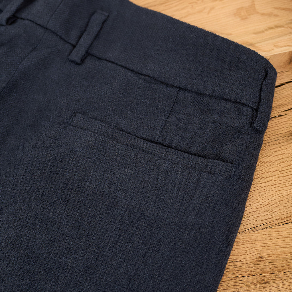 the miniera trouser by a.b.c.l. has been inspired by a 40’s classic suit pant and is made in italy from a japanese hemp-cotton-wool-blend. a true classic reviewed in abcl’s sartorial rough view.