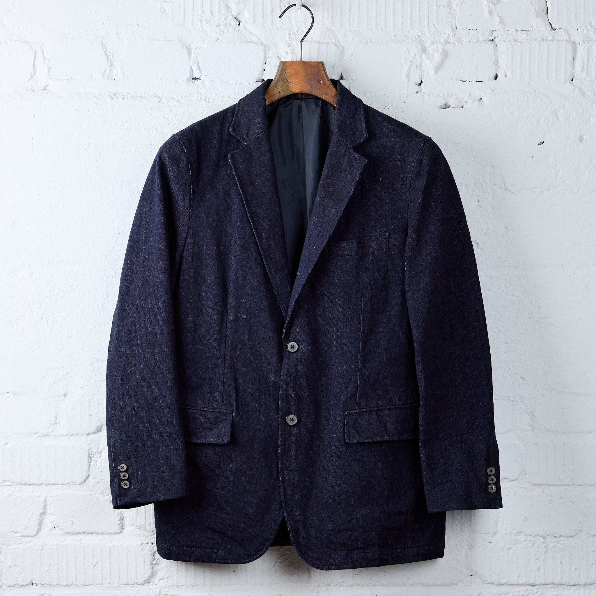 das brooklyn jacket von d.c. white ist in japan aus vorgewaschenem denimstoff gefertigt. ob mit chino oder in kombination mit der brooklyn trouser als anzug, dieser schöne blazer lässt sich vielseitig und für jeden anlass passend tragen.