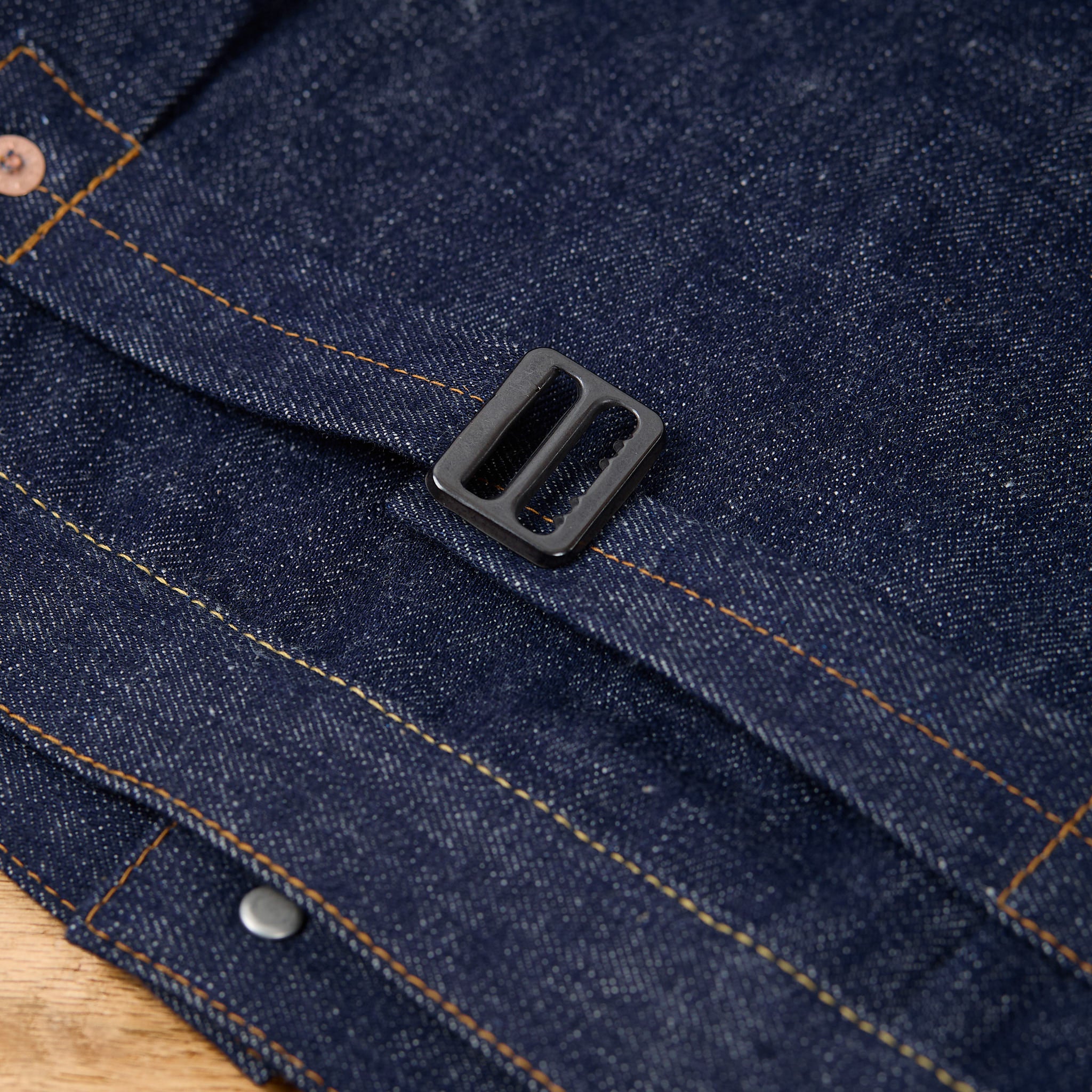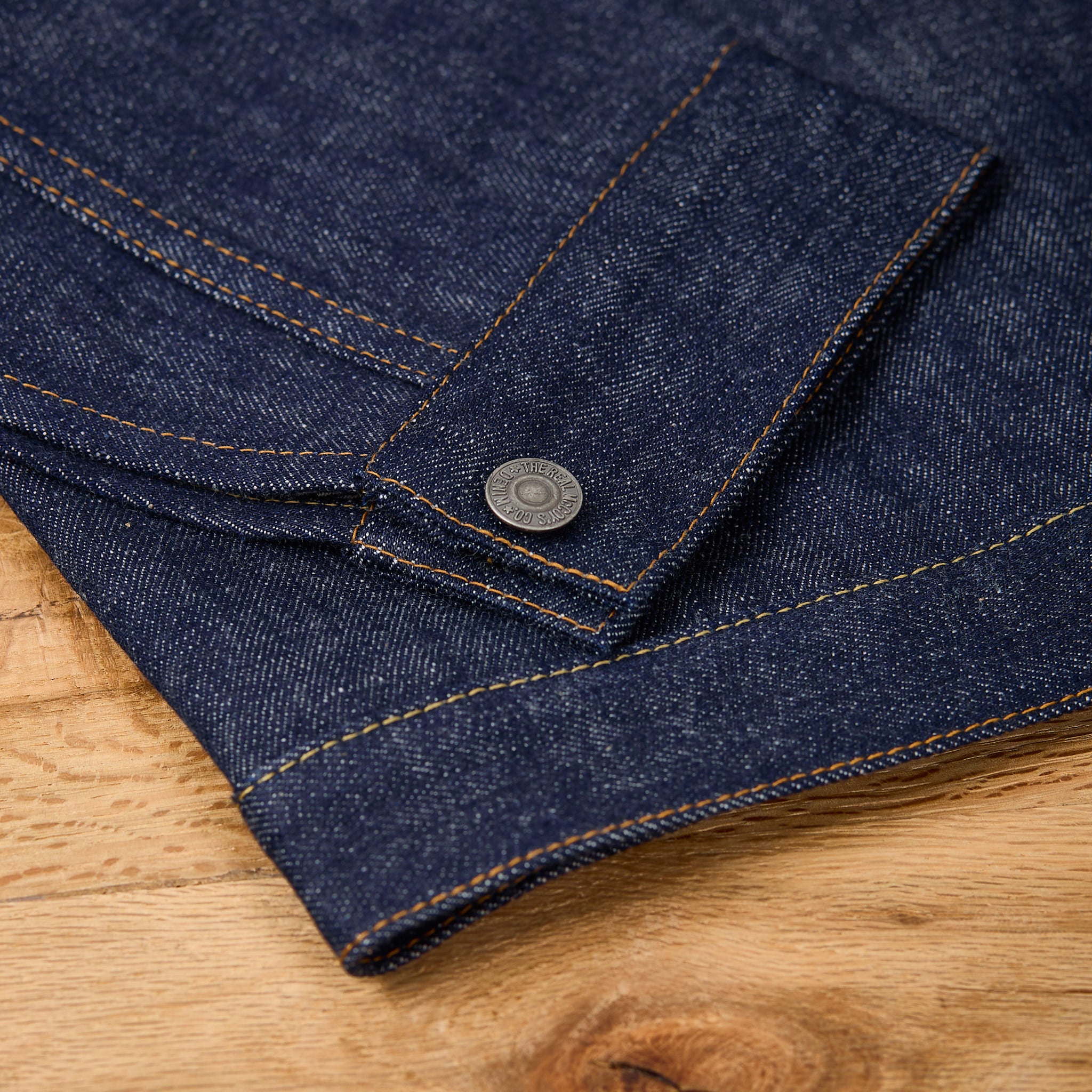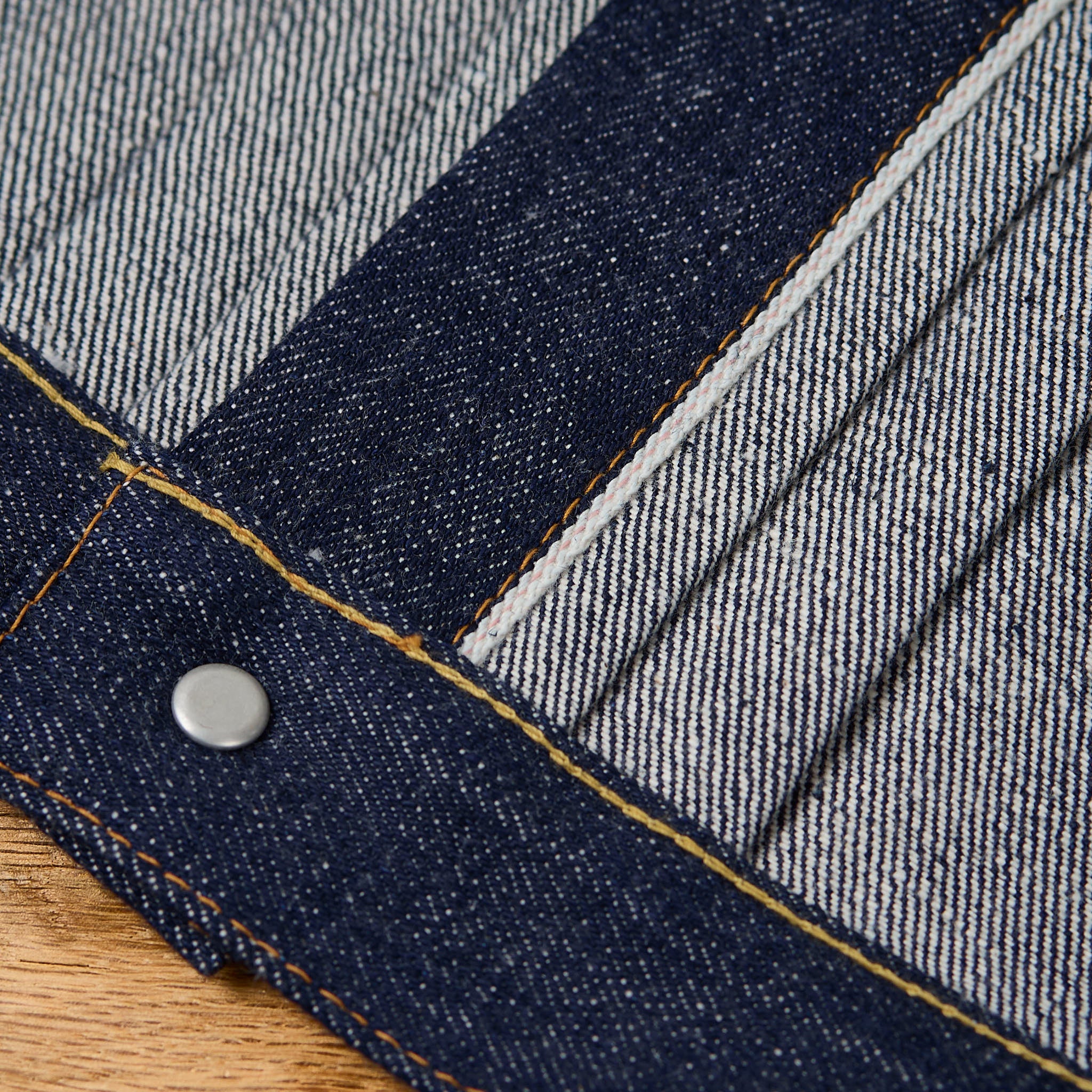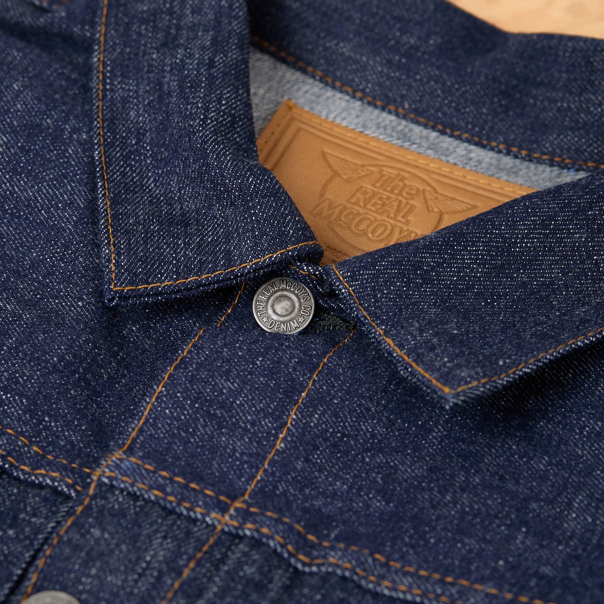die lot. 001xxj jeansjacke von the real mccoy’s basiert auf dem type 1 jackenmodell von levi's aus der ersten hälfte des letzten jahrhunderts. die jacke hat eine kastenförmige silhouette, eine plissierte vorderseite mit einer einzelnen vordertasche und einen cinch-back am rücken. für den wunderschönen 14.5oz schweren selvedge denim wird nur garn verwendet, der auf den ältesten spinnmaschinen japans gefertigt wird, um den originalfarbton wie damals zu erzielen, wird der indigo-farbstoff siebenmal aufgetragen. das ergebnis ist ein charakterstarker stoff, mit einer gehörigen portion natürlichem slub, der mit zunehmender tragedauer genauso schön altert wie das original aus den 1930er/1940er jahren.